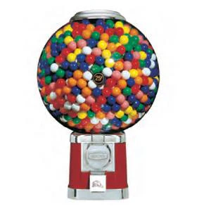 - Gumball dispenser vends 1" gumballs, 1" jawbreakers, or 27 mm bouncy balls